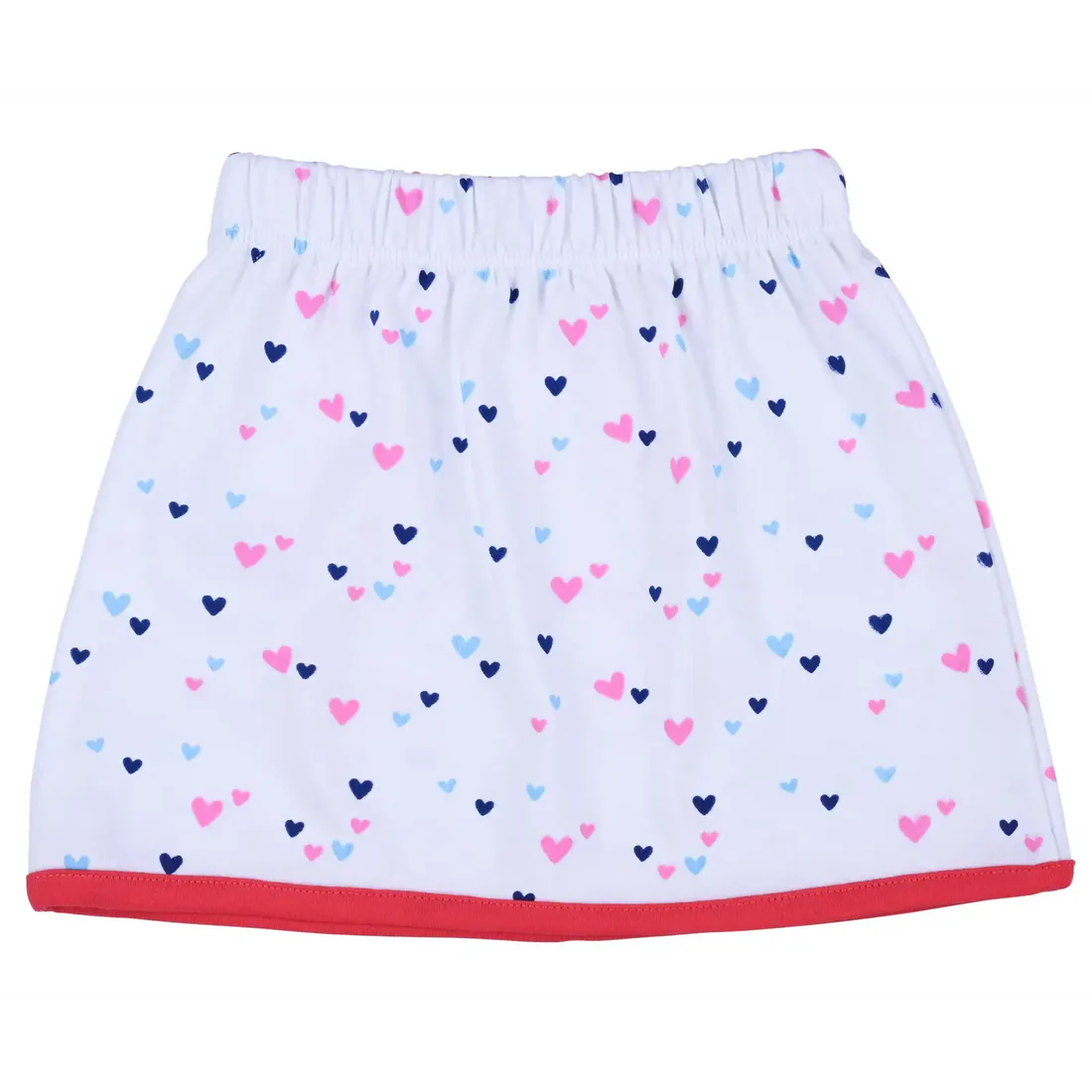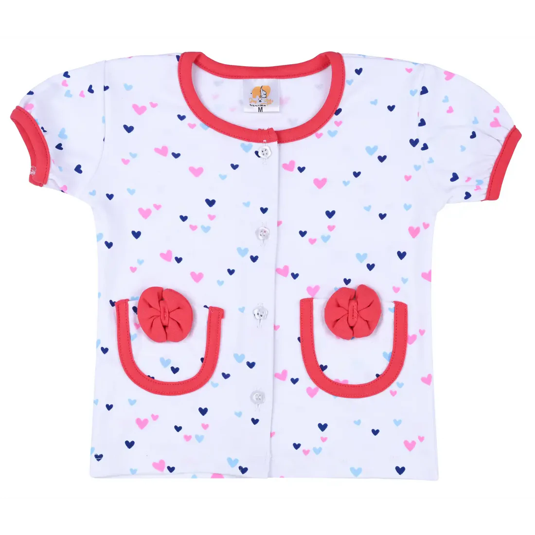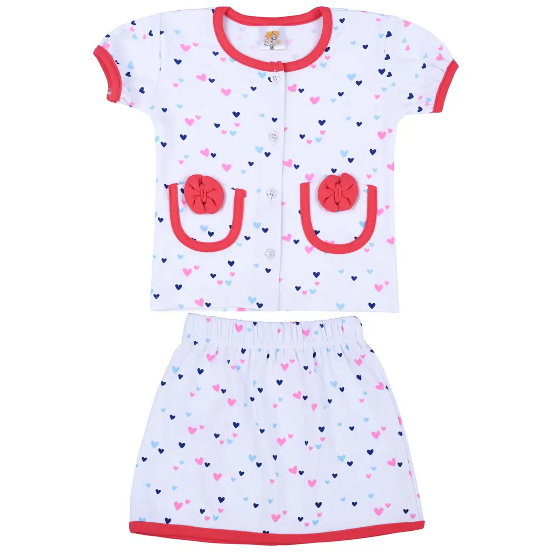 Keep your little one looking cute and feeling cozy with our Freya Baby Girl Top & Skirt Set. Made from soft and breathable interlock cotton, this set is perfect for everyday wear and special outings. The short-sleeve buttoned top features playful heart prints and adorable flower-detailed pockets, paired with a matching skirt for a stylish look. Gentle on delicate skin and easy to wear, this outfit ensures both comfort and charm for your baby girl.