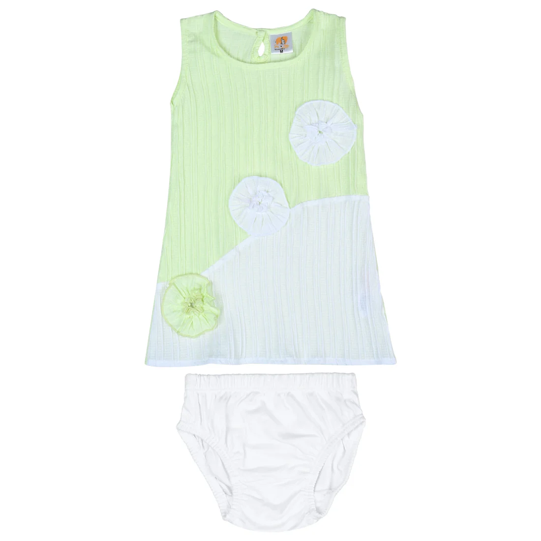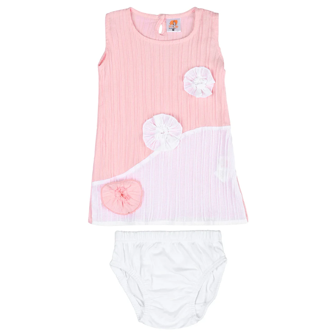 Dress your little one in comfort and style with our Joy ’n’ Me “Monica” Baby Set. Made from premium quality fabrics, this sleeveless frock comes with a matching diaper cover for complete ease. The soft ribbed fabric ensures breathability, while the cute floral patchwork detailing adds a touch of charm. Perfect for everyday wear, playtime, or casual outings, this set keeps your baby looking adorable and feeling comfy.