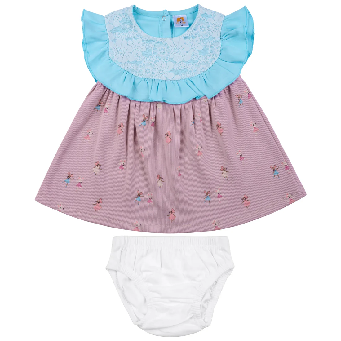 Bring elegance and comfort together with the Selena Baby Girl Dress Set. Made from soft and breathable 100% cotton interlock fabric, this frock is designed to be gentle on sensitive baby skin. The dress features a delicate lace yoke, frilled neckline, and playful printed patterns that add charm to your little one’s look. It comes with a matching diaper cover for complete ease and comfort.